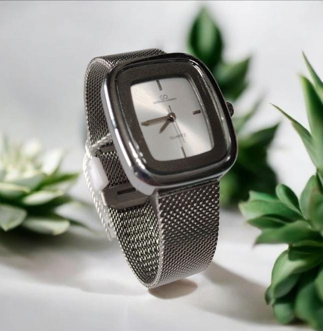 Sofisticação no pulso: mostrador retangular e bracelete leve, perfeito para o dia a dia.